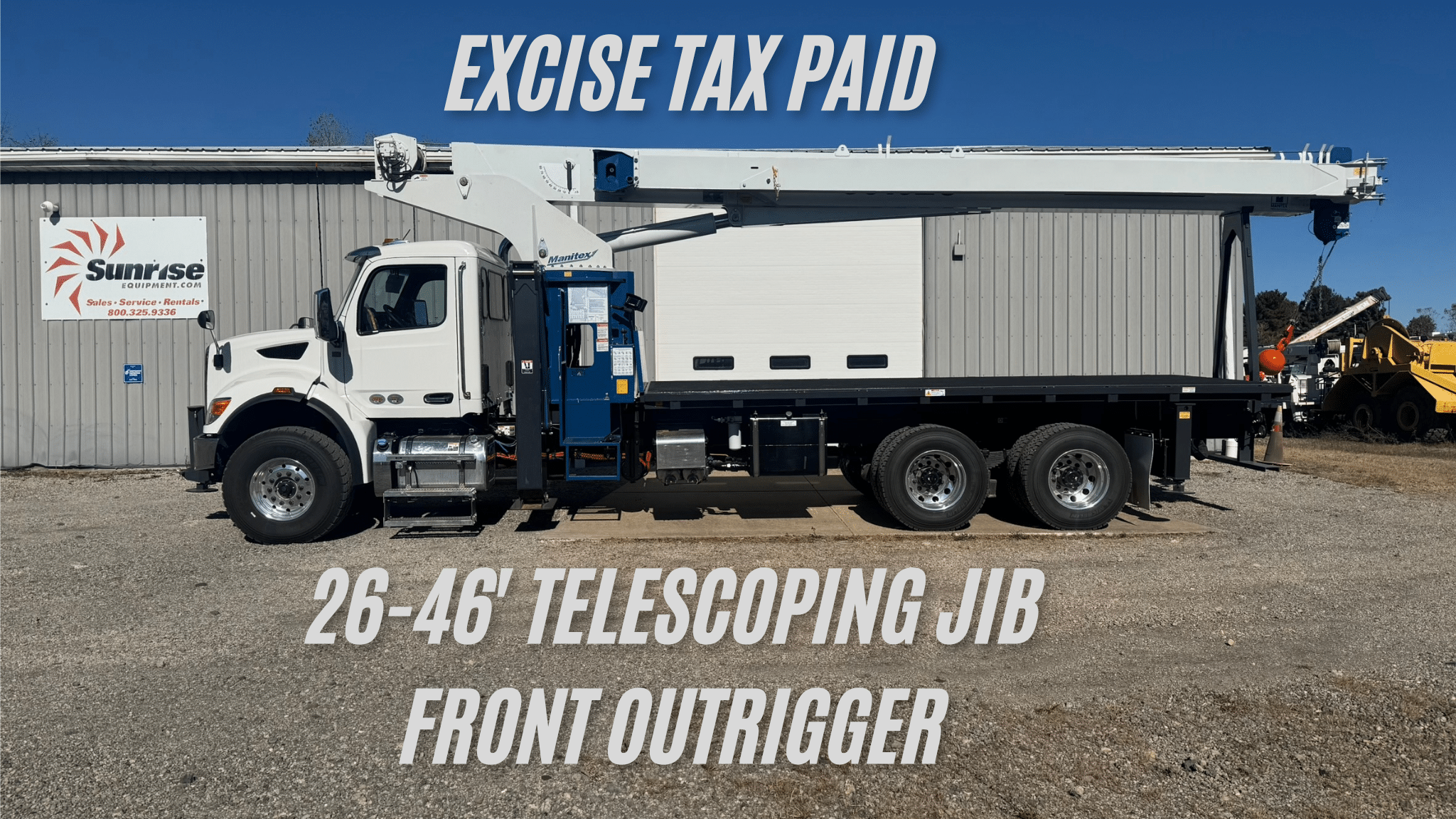 We have boom trucks for sale. Sunrise Equipment is one of the most reputable equipment companies in the country and offers the best prices and terms in the industry.