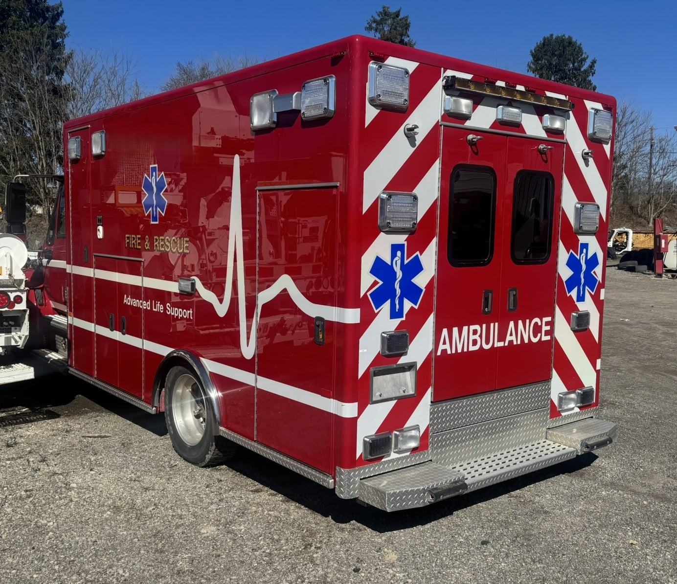 This is a 2009 International 4300SBA LP 4×2 ambulance. This is powered by an International 7.6L diesel engine and Allison 5-speed automatic transmission. 170″ WB