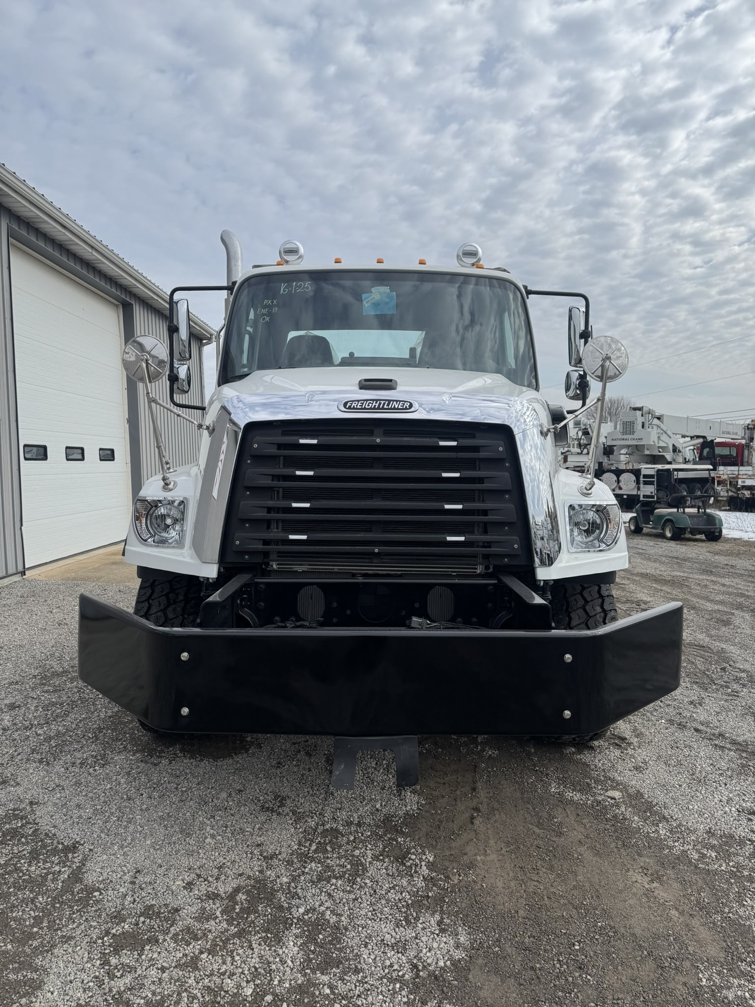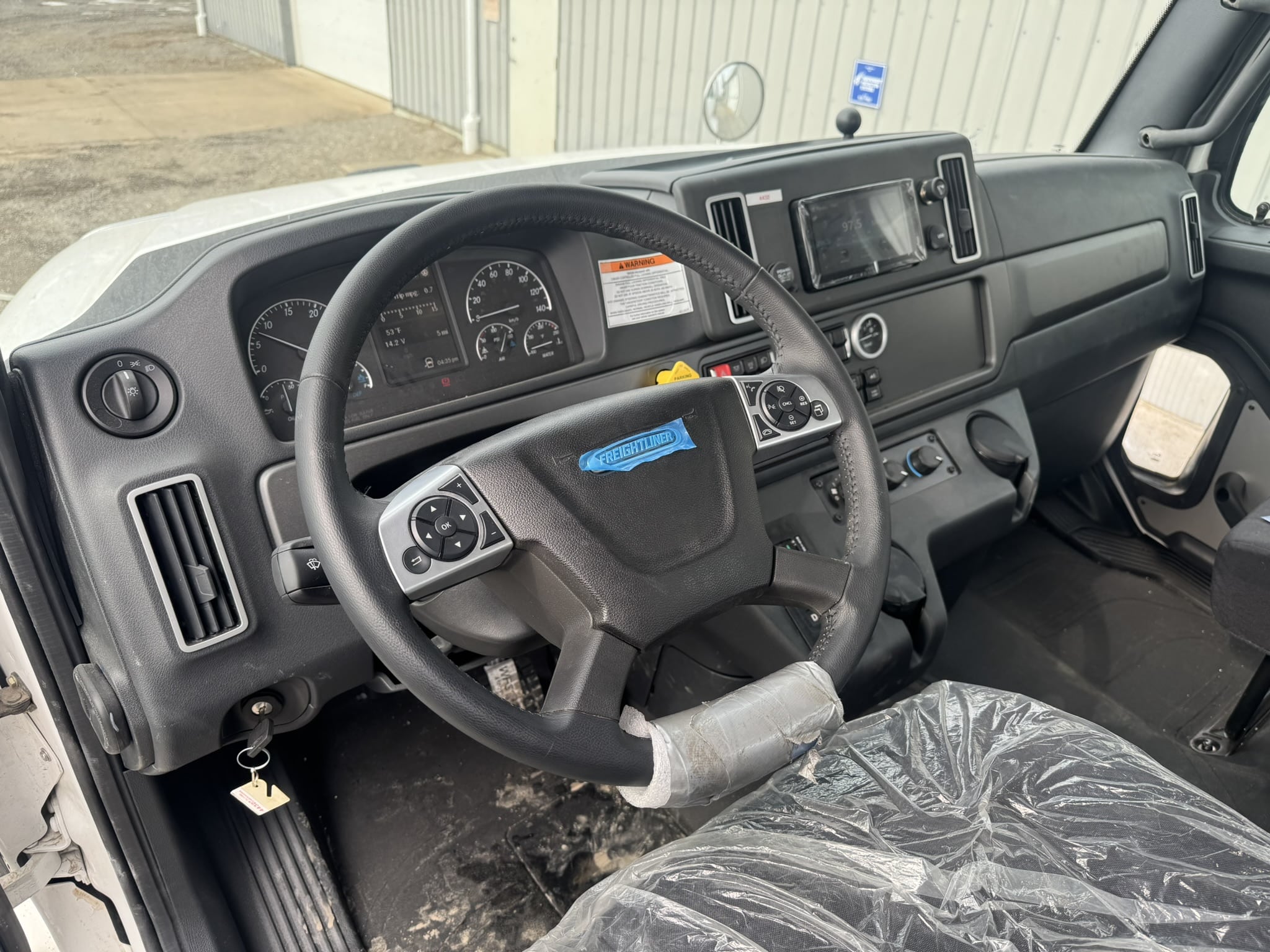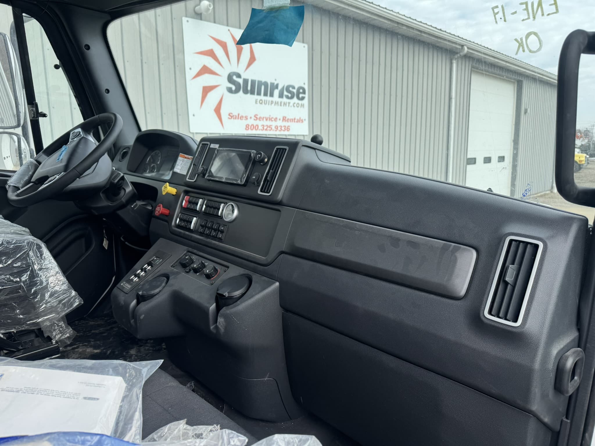 2026 Freightliner 114SD plus cab and chassis featuring a Cummins X12 500V HP, 6-speed Allison 4500 RDS Automatic transmission, Meritor 20,000 lb front axle and Meritor 46,000 lbs rear axles, 66,000 lbs GVWR- 425/65R 22.5 Front tires and 11R 22.5 rear tires, air brakes, 162″ CT measurement, Setback front axle, Airliner rear leaf suspension, trailer towing provision at the end of frame with SAE J560 connector, PTO plate Top and drivers side 3/4″ frane thickness, Touchscreen- AM/FM/Bluetooth Radio, 2 bucket seats, power windows, power locks, power mirrors, tilt steering wheel & crusise control.