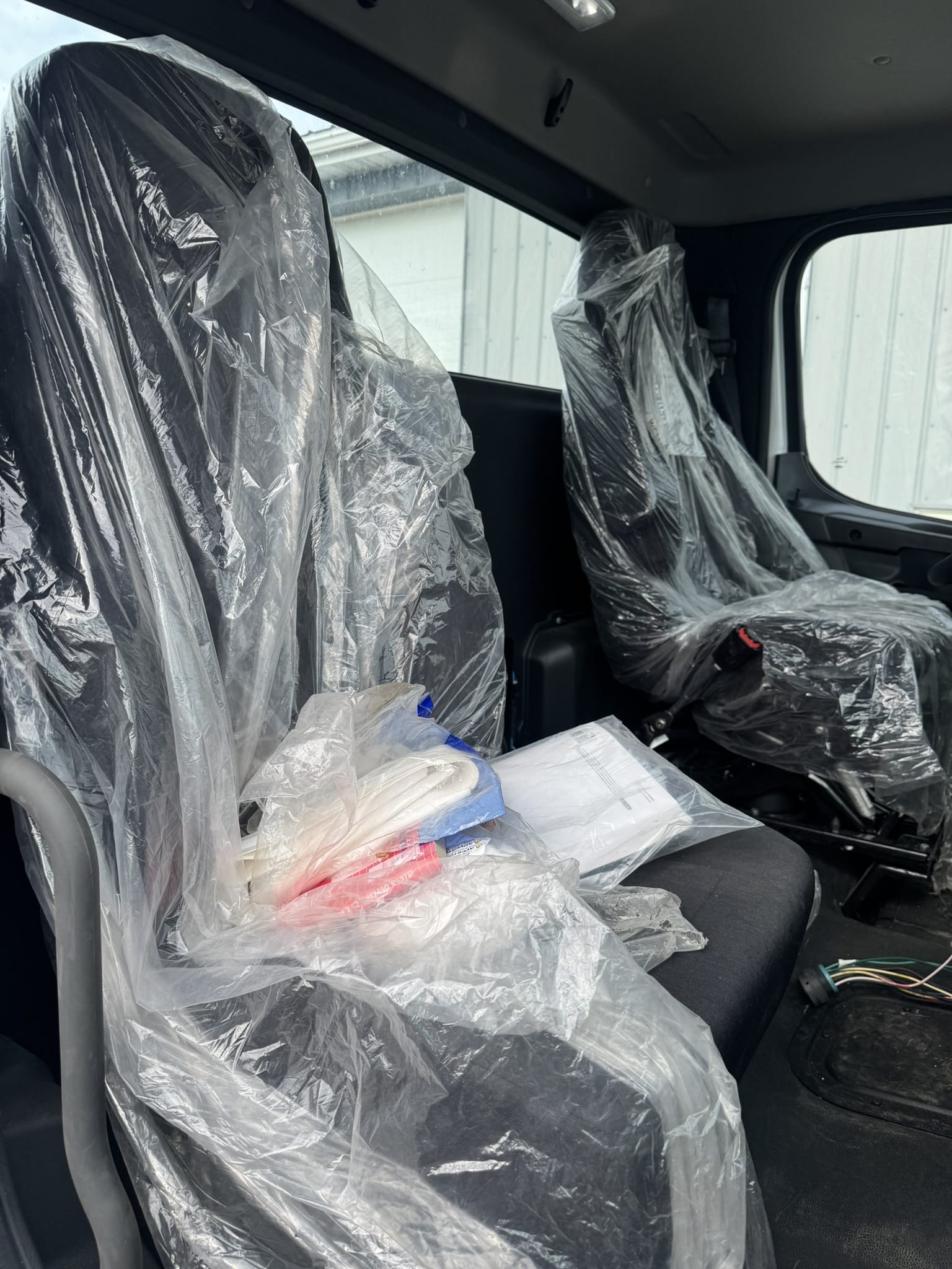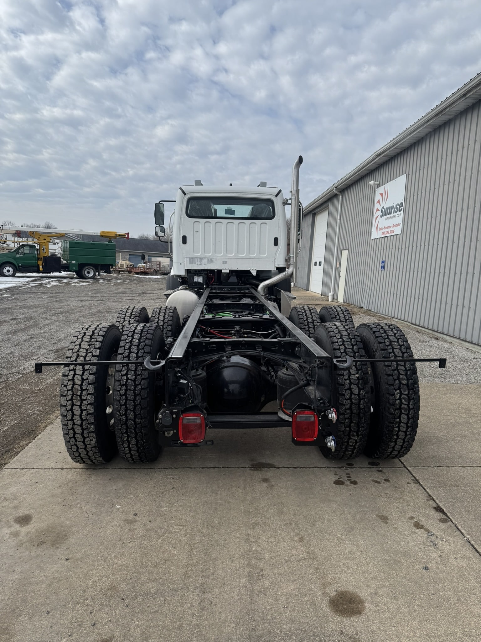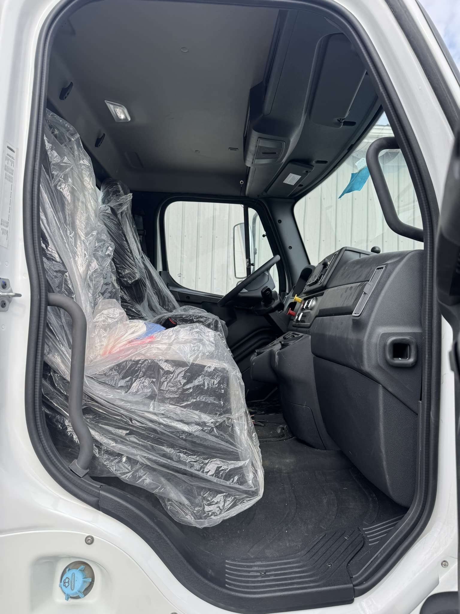 2026 Freightliner 114SD plus cab and chassis featuring a Cummins X12 500V HP, 6-speed Allison 4500 RDS Automatic transmission, Meritor 20,000 lb front axle and Meritor 46,000 lbs rear axles, 66,000 lbs GVWR- 425/65R 22.5 Front tires and 11R 22.5 rear tires, air brakes, 162″ CT measurement, Setback front axle, Airliner rear leaf suspension, trailer towing provision at the end of frame with SAE J560 connector, PTO plate Top and drivers side 3/4″ frane thickness, Touchscreen- AM/FM/Bluetooth Radio, 2 bucket seats, power windows, power locks, power mirrors, tilt steering wheel & crusise control.