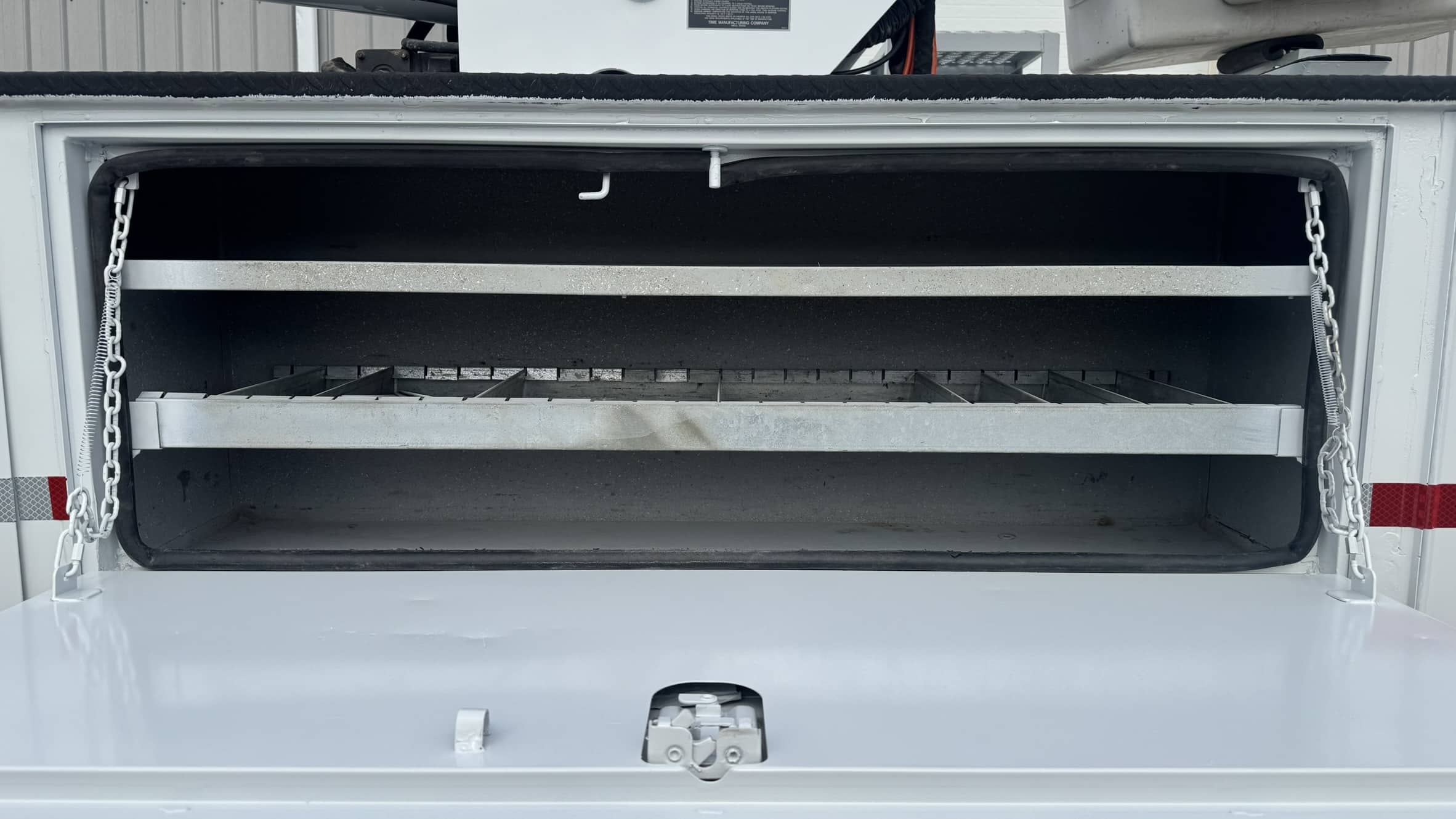 This is a 60′ Versalift VO455MHI on a 2012 Ford F750 4×2. This truck is powered by a Cummins 6.7L diesel engine and a 6-speed Allison automatic transmission. The aerial boom has a 60′ working height with a two man bucket and a 2,000 pound material handler. This truck was previously owned by a large rental company with a great fleet program. The boom has current ANSI, Dielectric and DOT inspection. This is a great truck and is ready to work! SR# 4465