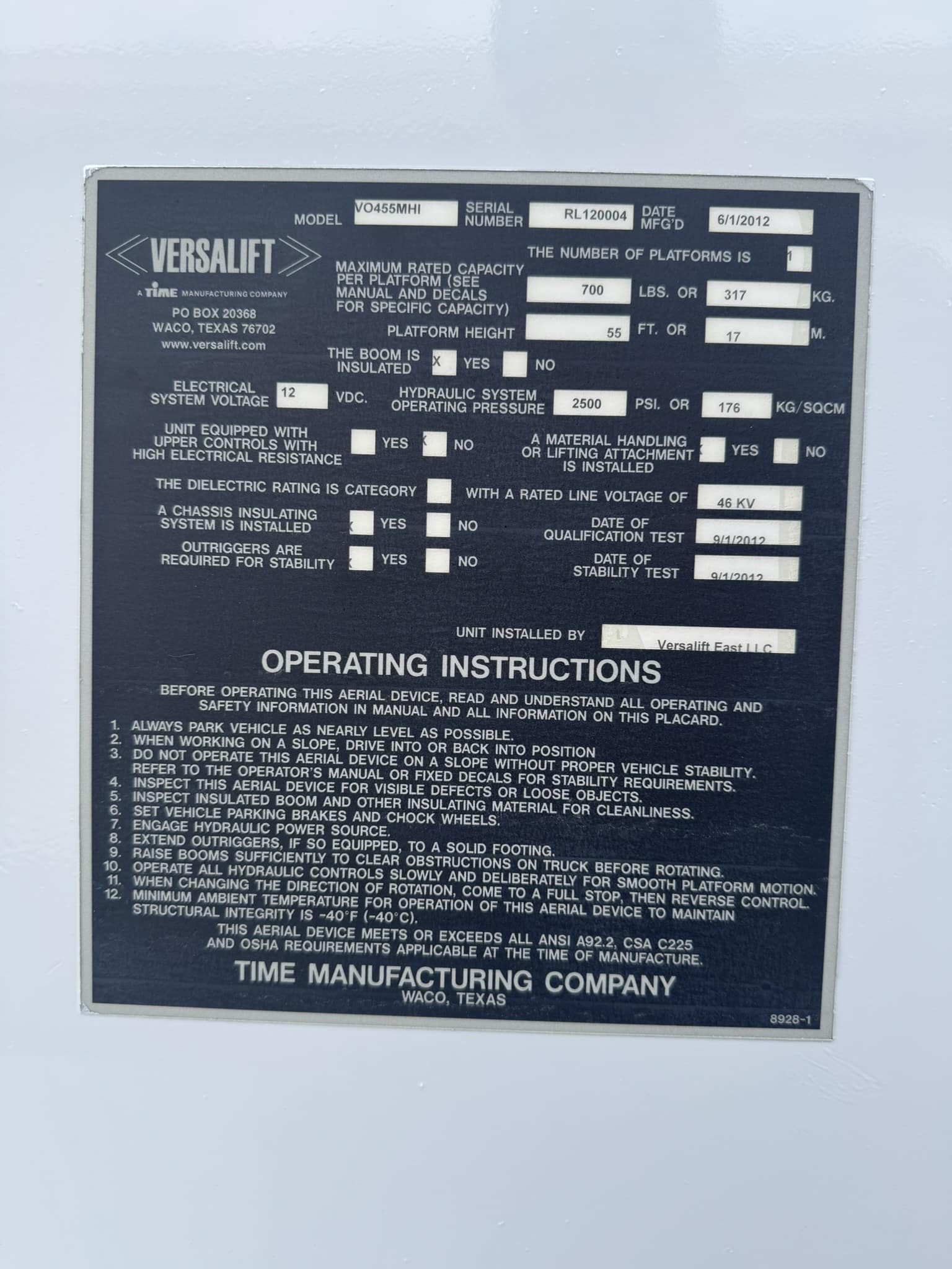 60′ VERSALIFT VO455MHI ON 2012 FORD F750 4X2 CHASSIS