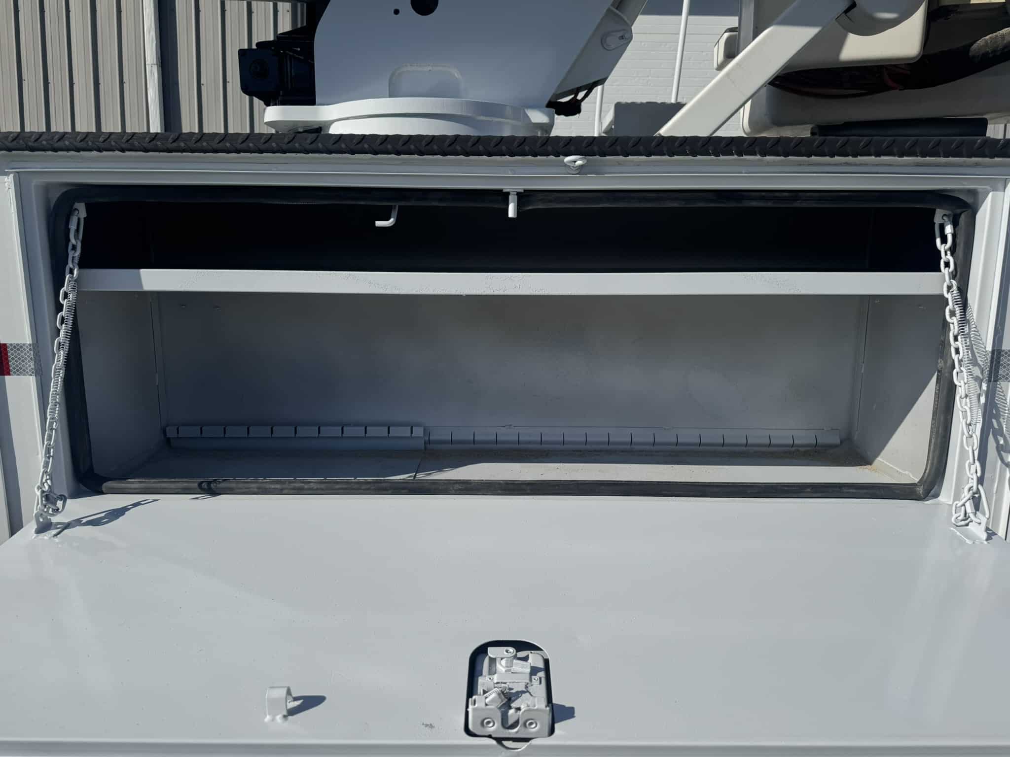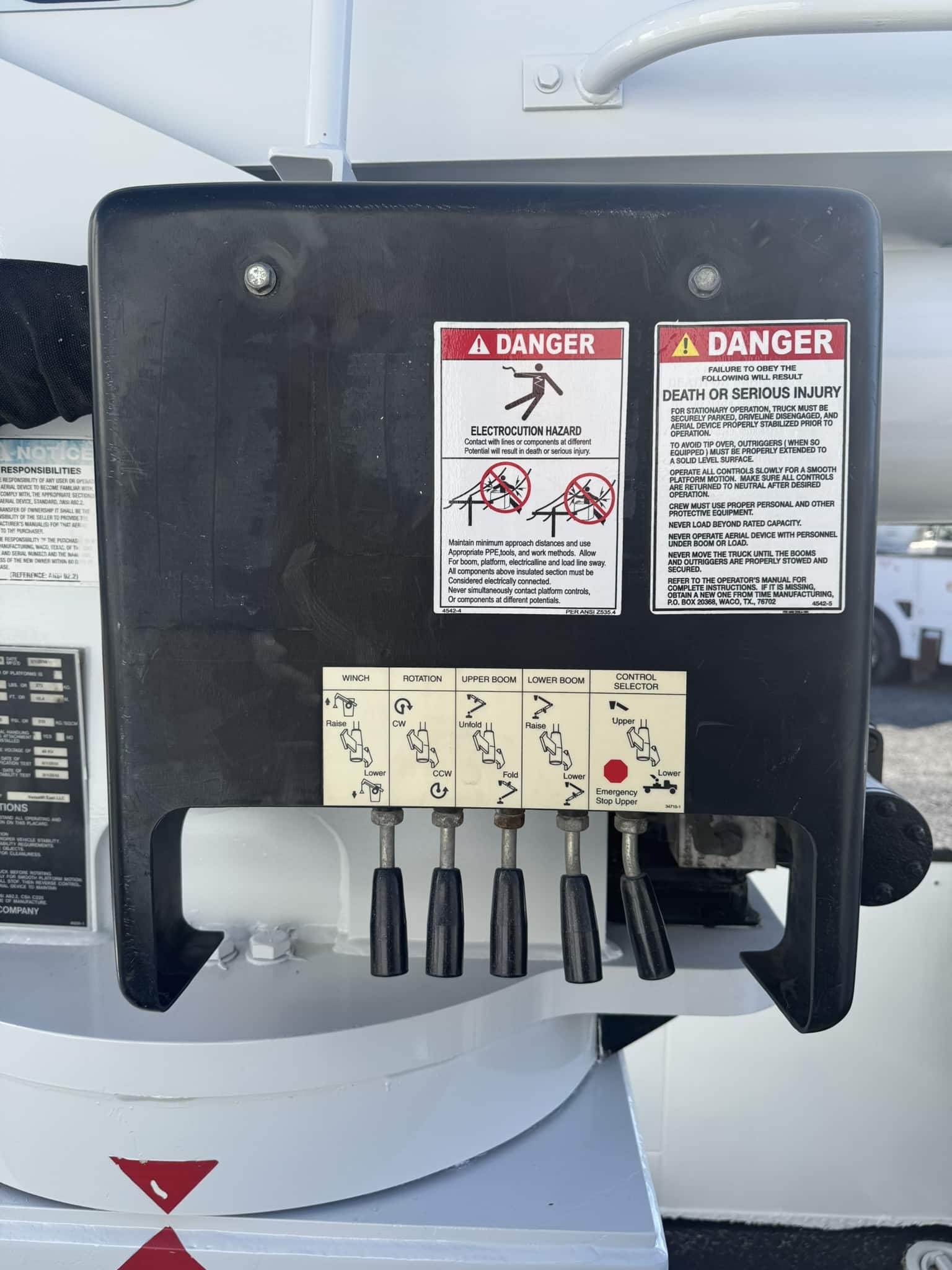 This is a 65′ Versalift VO360XMHI-01 on a 2015 Ford F750 4×2. This truck is powered by a Cummins 6.7L diesel engine and an Allison automatic transmission. The over-center aerial boom has a 65′ working height with a two man bucket and a 2,000 pound material handler. This truck was previously owned by a large rental company with a great fleet maintenance program. The boom has a current ANSI, Dielectric and DOT inspection. This is a great truck and is ready to work! SR# 4461