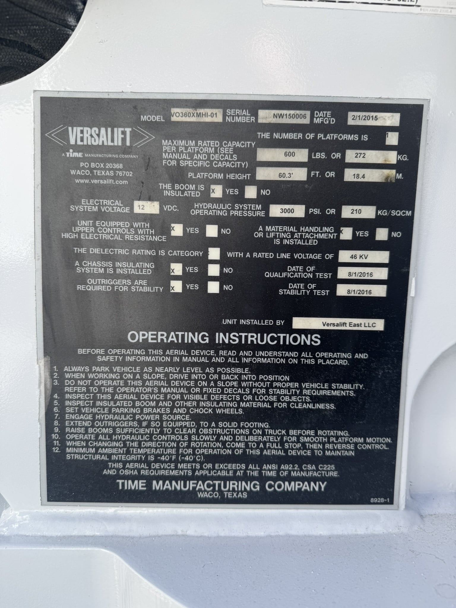 65′ VERSALIFT VO360XMHI-01 ON 2015 FORD F750 4X2 CHASSIS