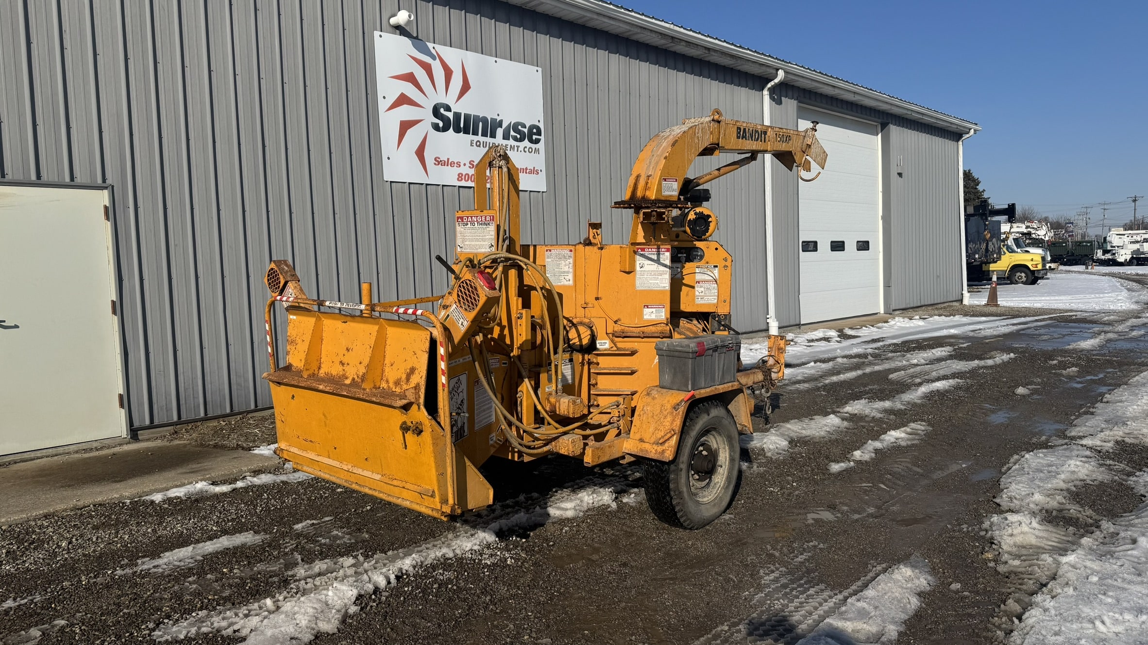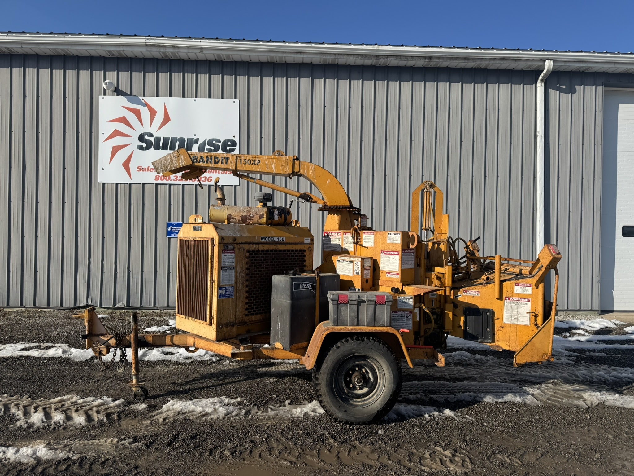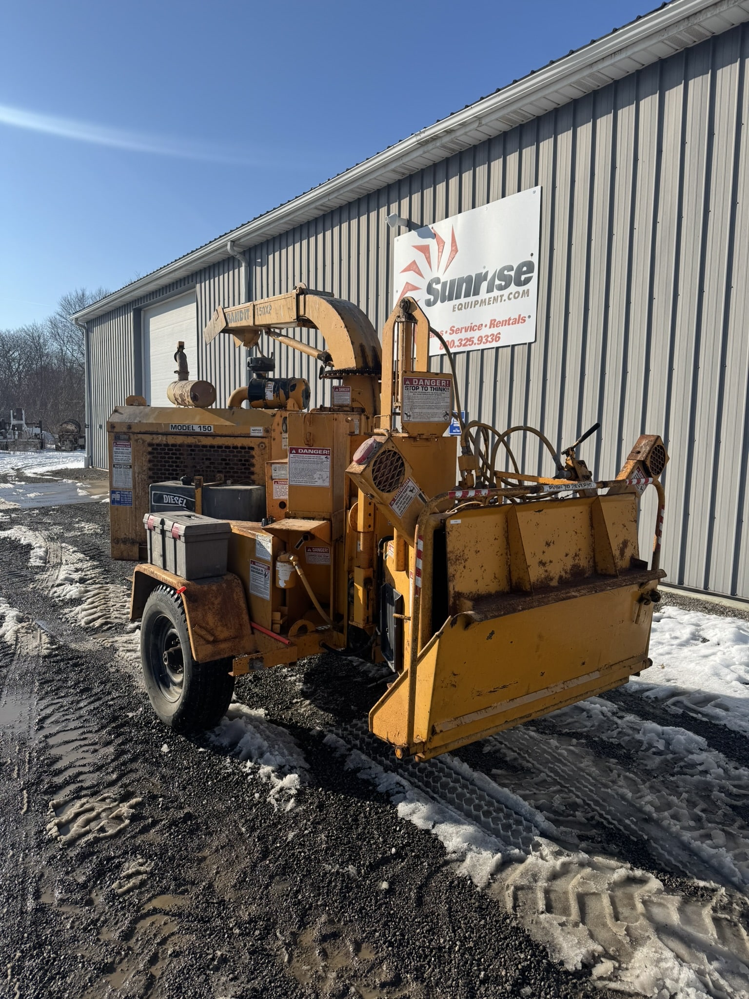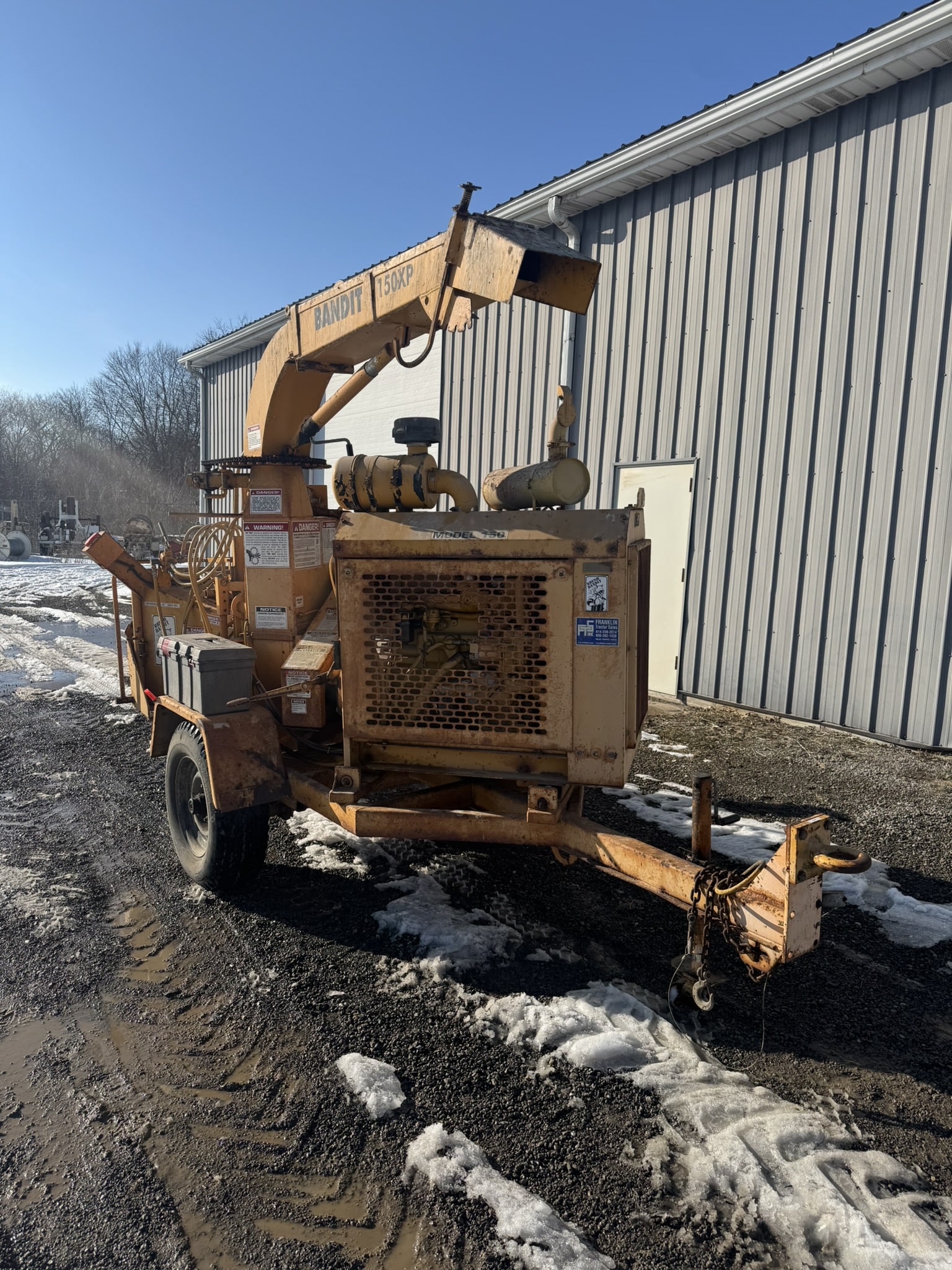 This is a 12″ Brush Bandit 150XP chipper. This is powered by a John Deere 4045 4.5L 80HP diesel engine. This was previously owned by a local township with very little use on it.