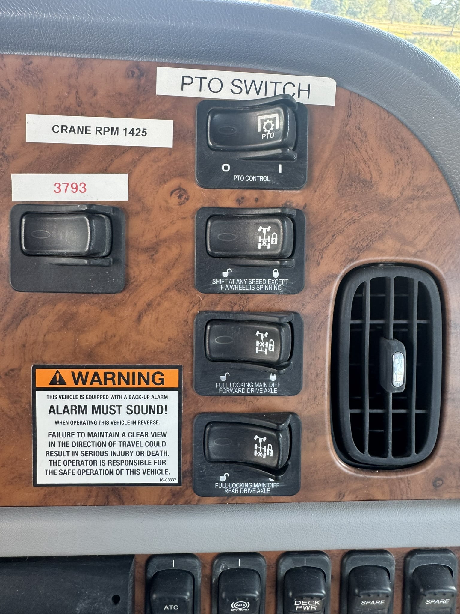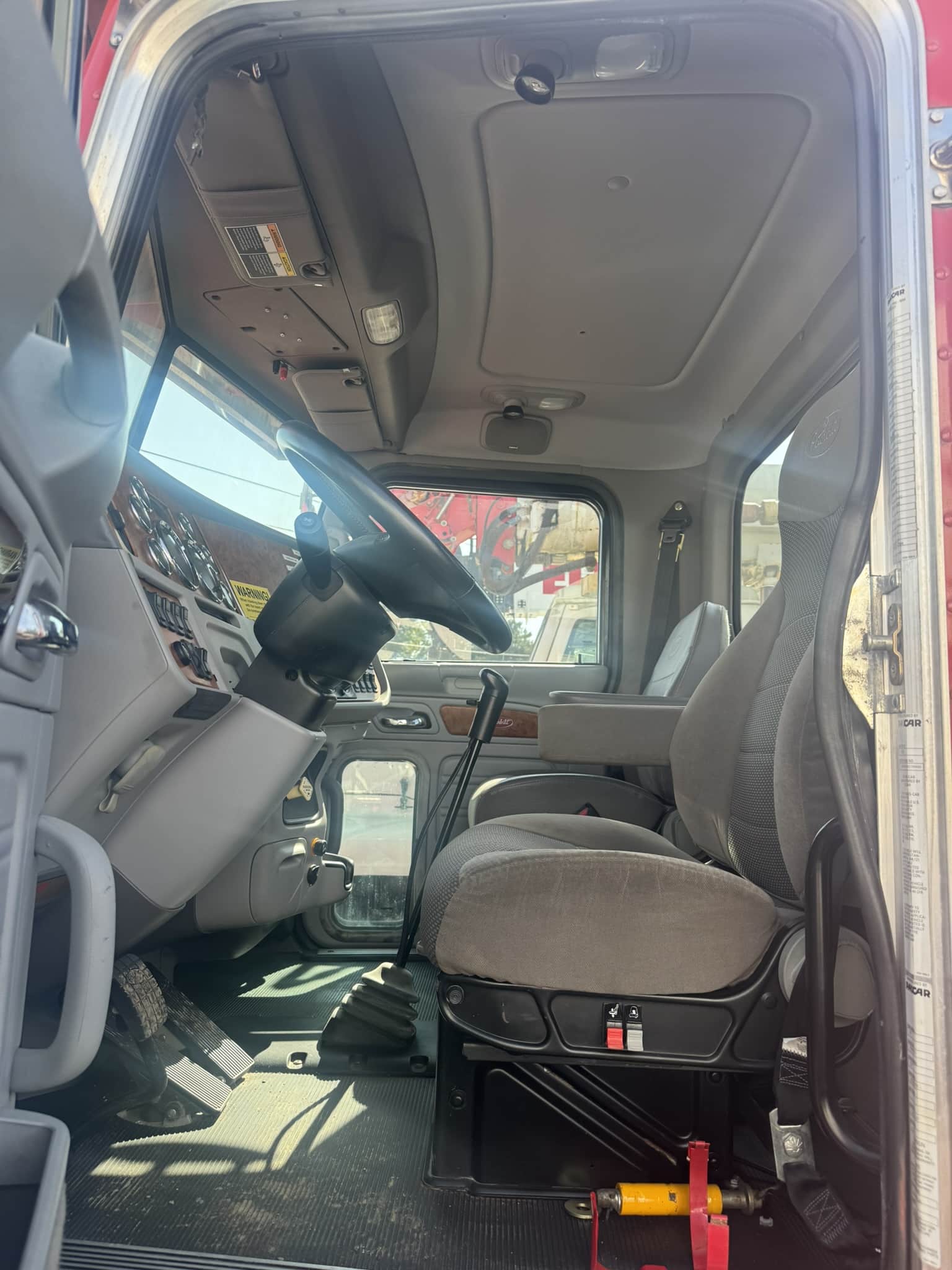 This is a 50-ton National crane on a very low mileage 2009 Peterbilt 367 tri drive. The tip height of this boom is 110′. This unit will travel to your job at 60 MPH and set up in 5 minutes then easily make a 50-ton lift. It will then return home at road speeds, all with one man. You can extend the boom height 26′-45′ with an additional jib for an additional cost through a National dealer. The total tip height would be approximately 155′ or 47 meters.